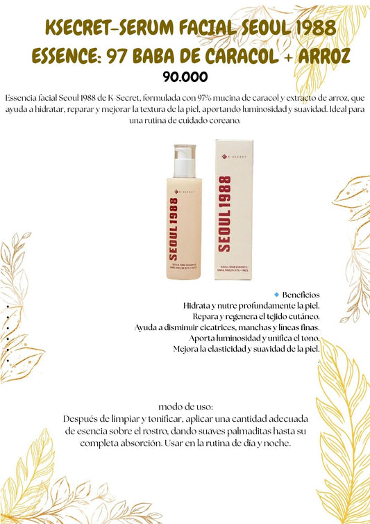 KSECRET-SERUM FACIAL SEOUL 1988 ESSENCE: 97 BABA DE CARACOL + ARROZ